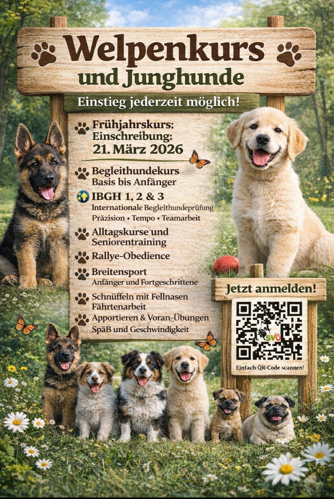 (Welpen/Junghundekurse finden ganzjährig statt, Einstieg jederzeit möglich)